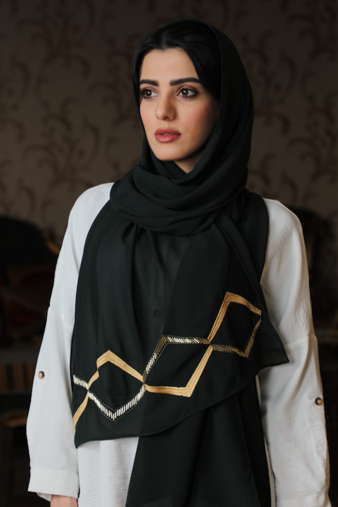 اذا كنت تعتقدين ذالك فانت انيقة مثلنا! لقد صممنا هذه الطرحة الجميلة بالخرز البراق من تصميمنا لتجعلك تشعرين بالتميز.